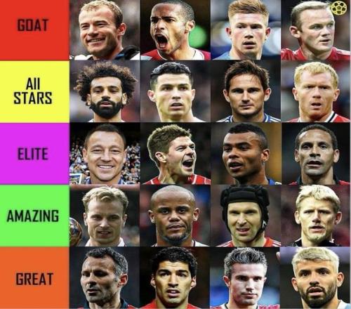 整体来说,这份分档明显更尊重英超时期的贡献而不是整个职业生涯,也更偏向进攻球员。如果按防线影响力和冠军数量去重排,特里、费迪南德、孔帕尼、舒梅切尔起码有一两位能往前挤一档;而萨拉赫、阿圭罗、苏亚雷斯这种短时间里极度爆炸的前锋,也完全有资格在很多球迷心里碰一碰GOAT门槛。