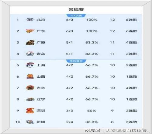 随着广东6连胜,天津终结不胜尴尬败,CBA一夜疯狂,最新排名如下